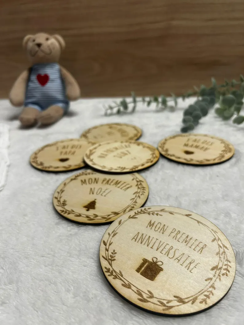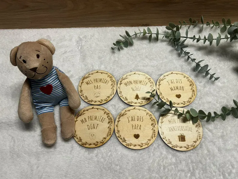 Cartes “Ma première fois” bébé en bois - Lot de 6 cartes souvenir