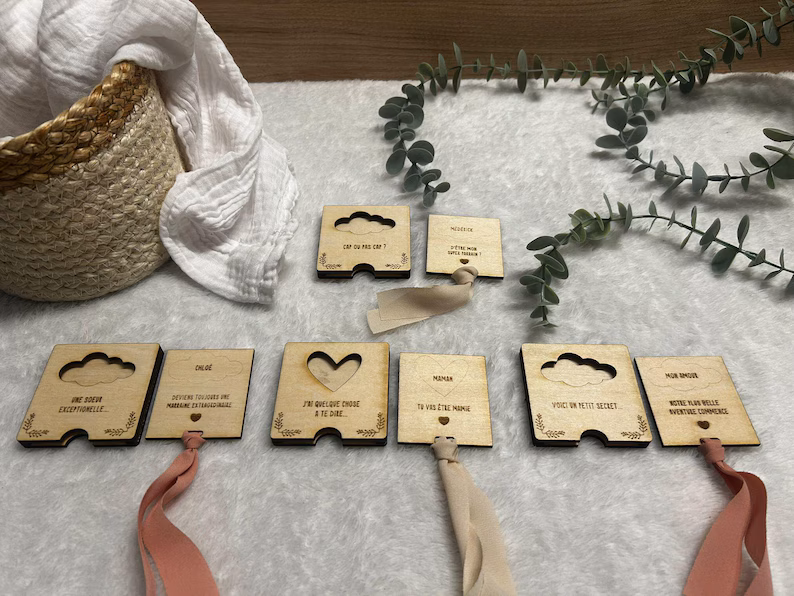 ¤ Bois naturel, gravure fines et durable